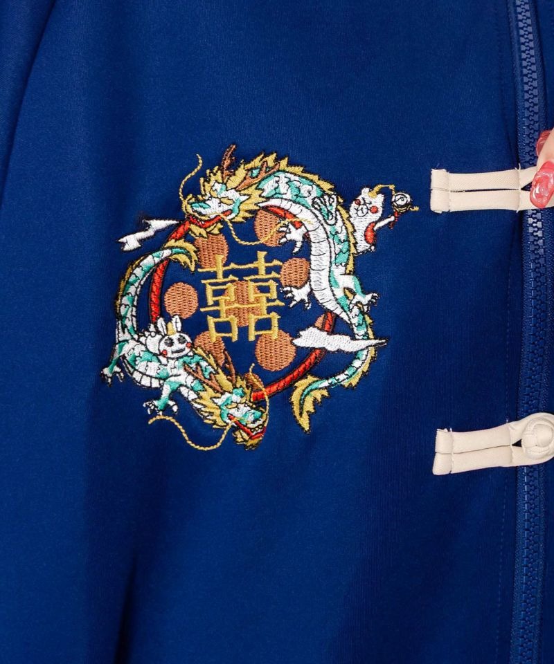 スカラーパリティー / ウサギと龍刺繍 カンフーボタンジャージ