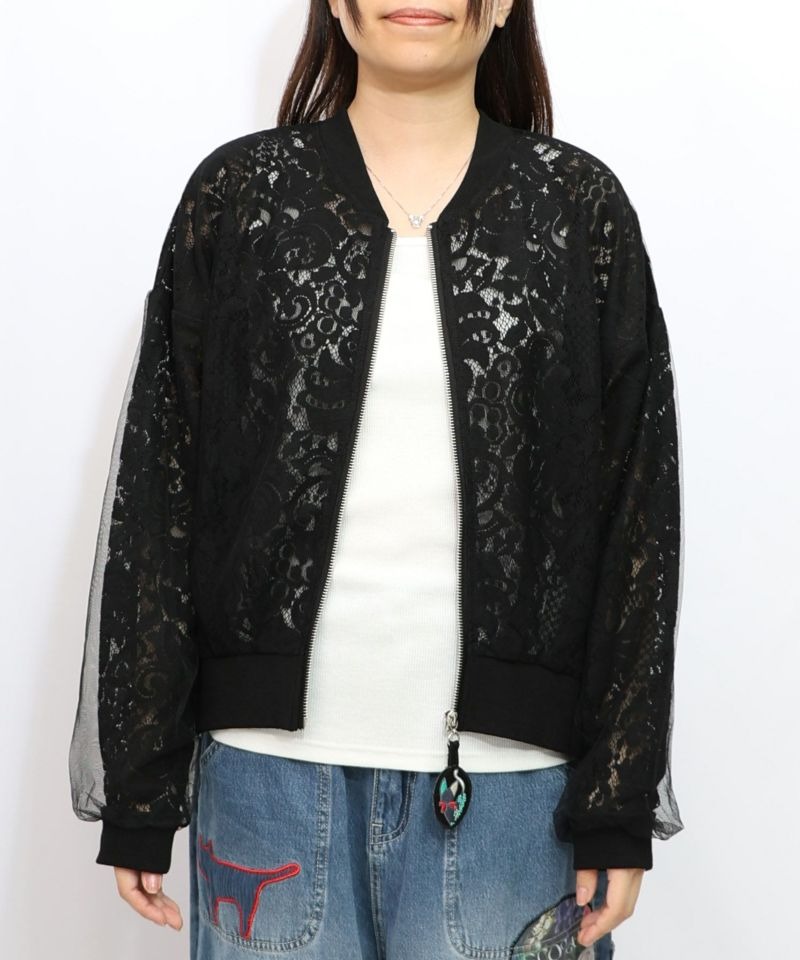 スカラー / ネコチャームチュール重ねレースブルゾン