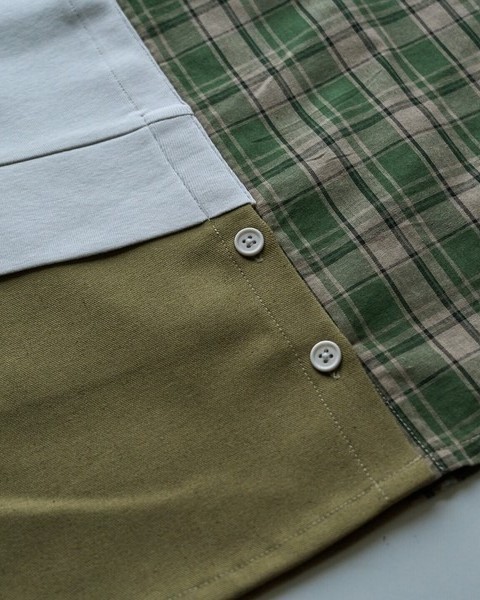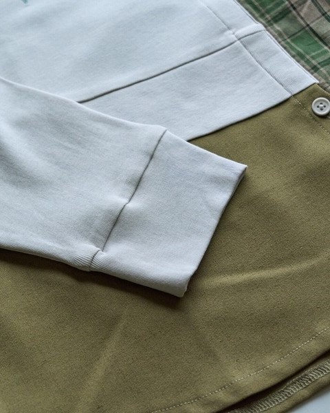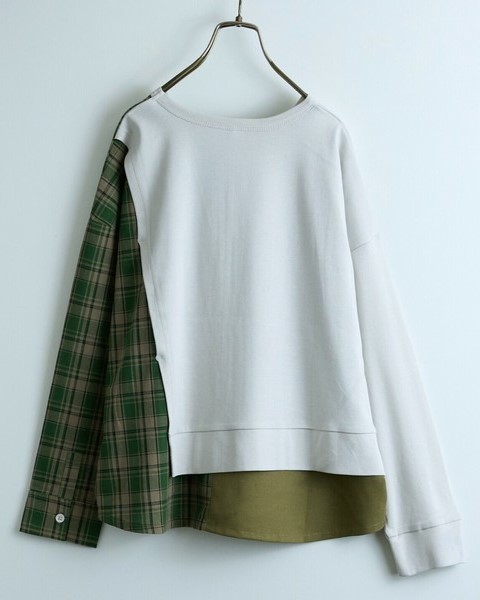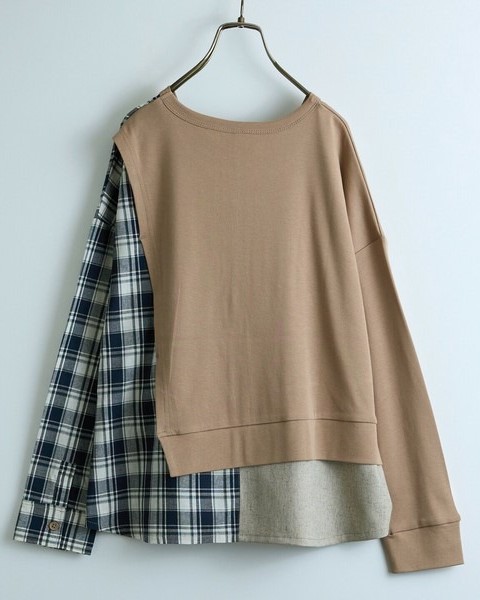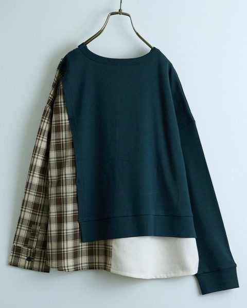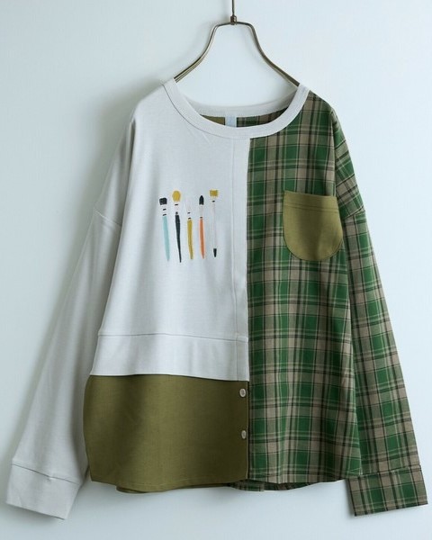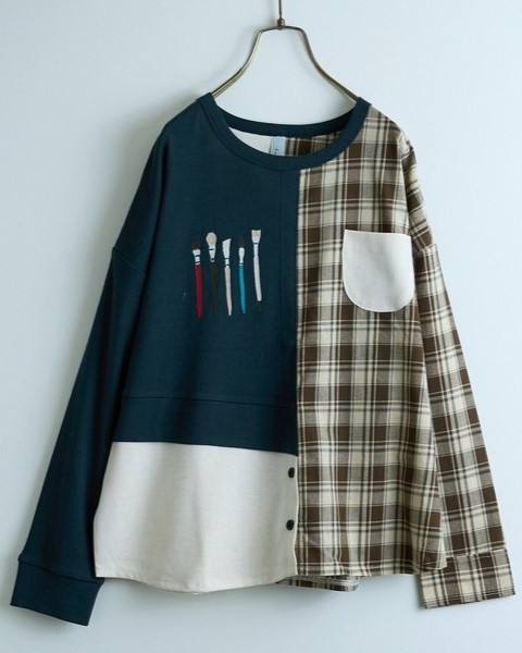 目を引くユニークな生地使いのプルオーバーに仕上がりました。