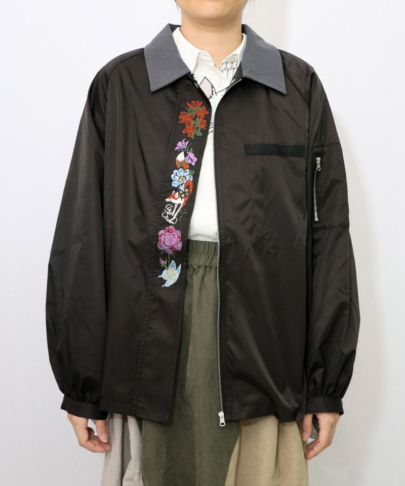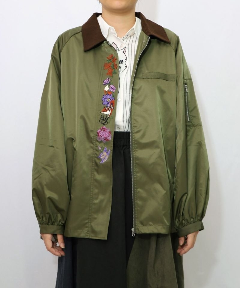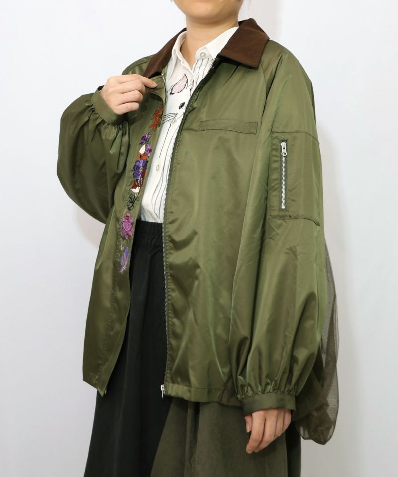イズスカラー / キツネと花刺繍 チュール重ねブルゾン