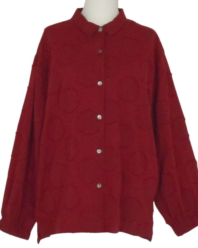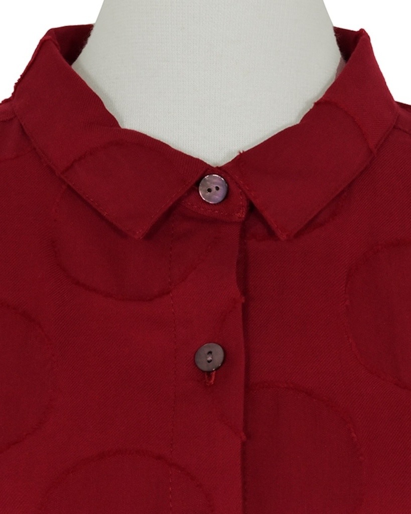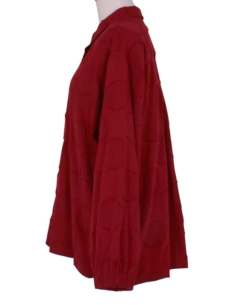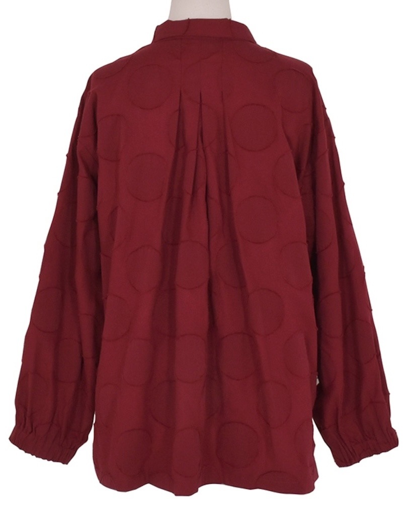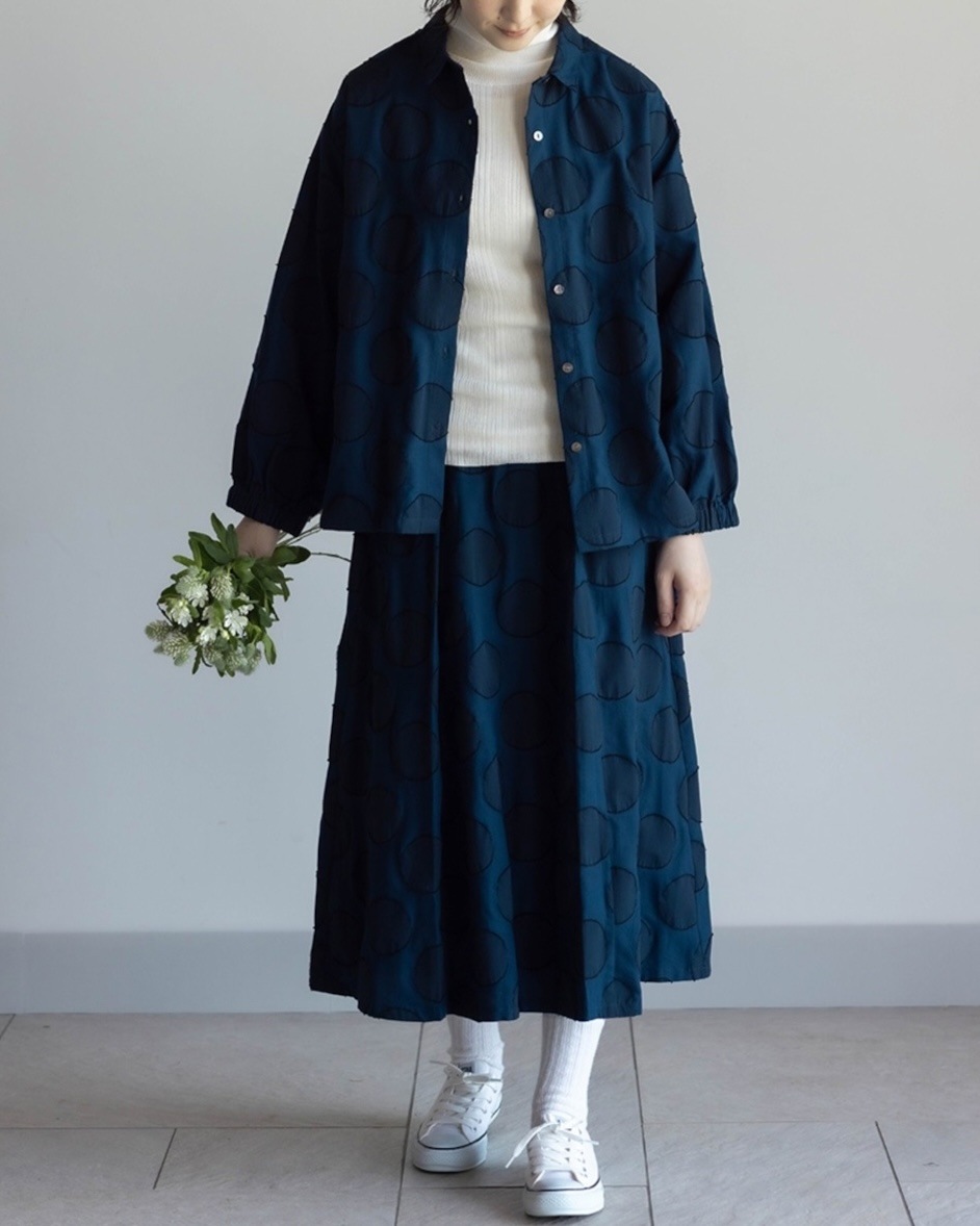 ゆったりとしたシルエットで、バックにタックを入れることで後見頃にフレアー感を出しています。