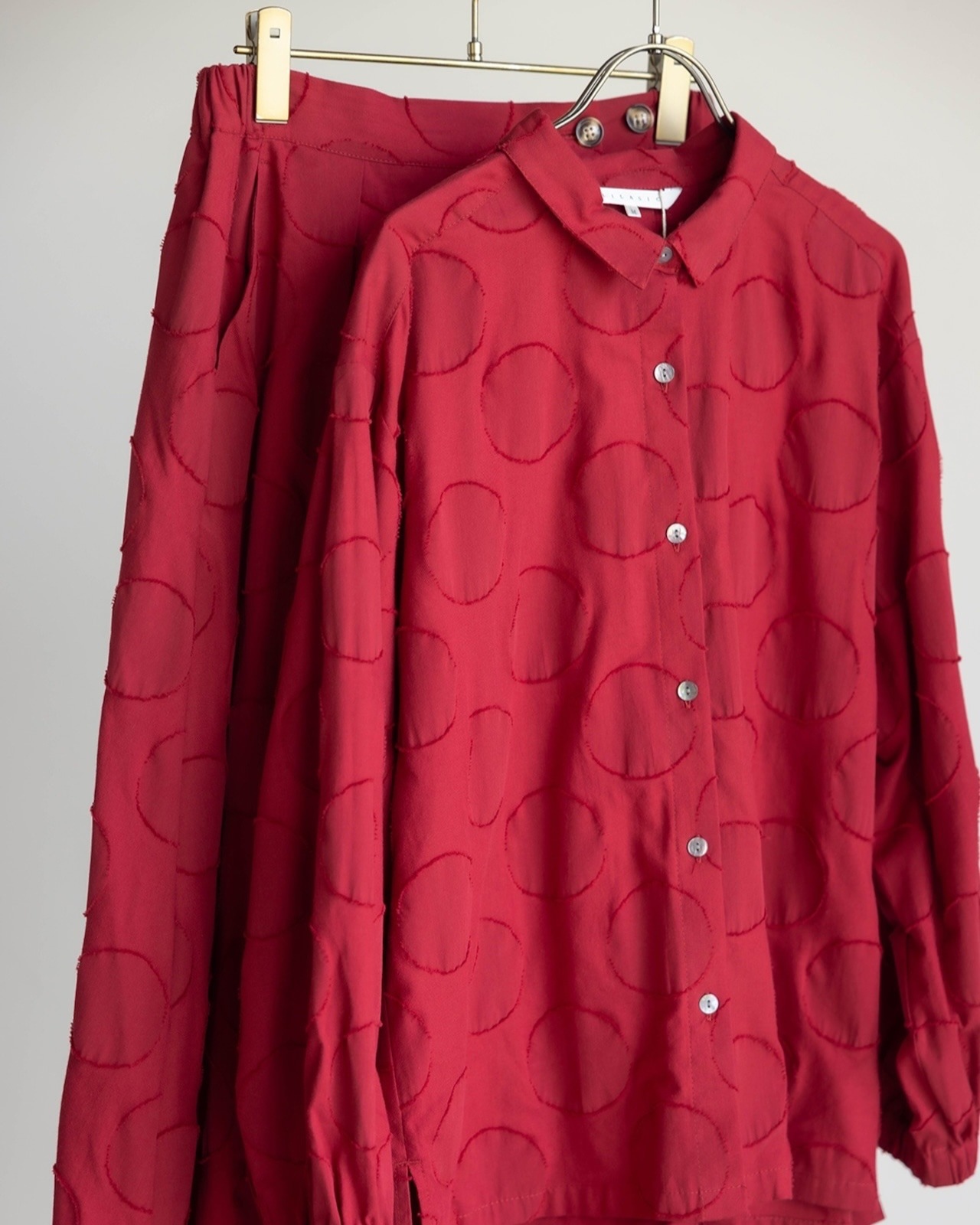 ドット柄をカットジャカード織りで表現したコットン素材です。