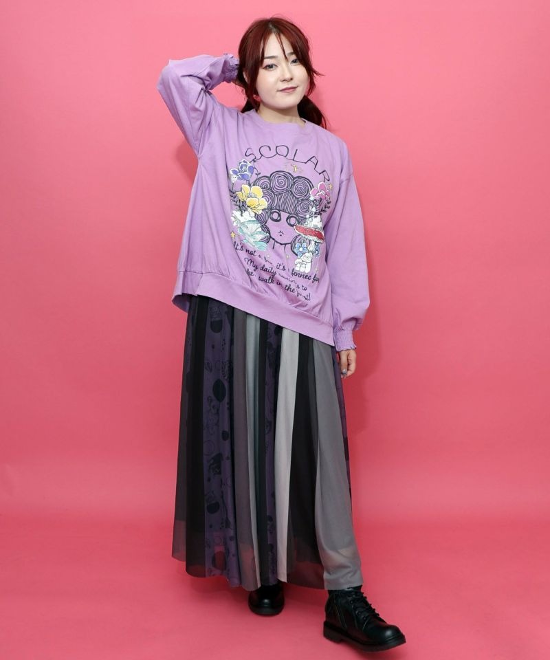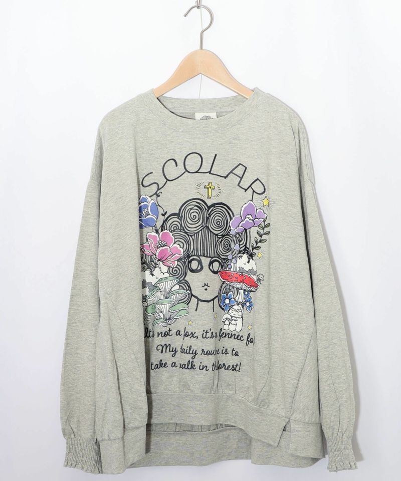スカラーらしいPOPなモチーフが大胆にプリントされた長袖Tシャツ。
