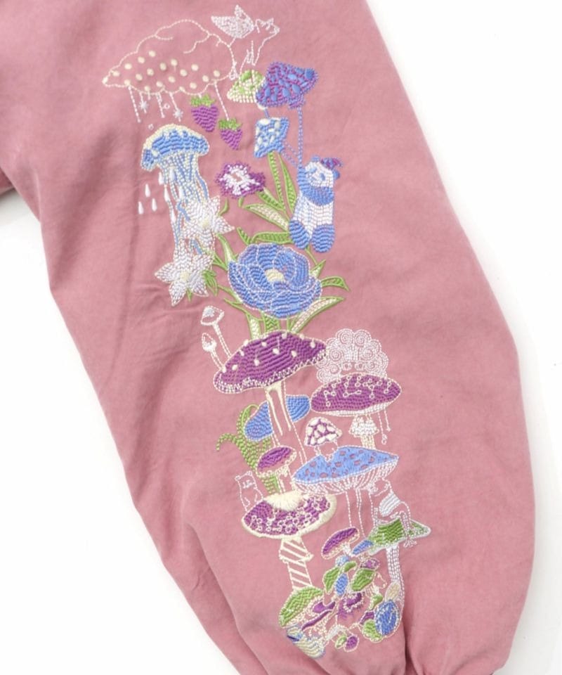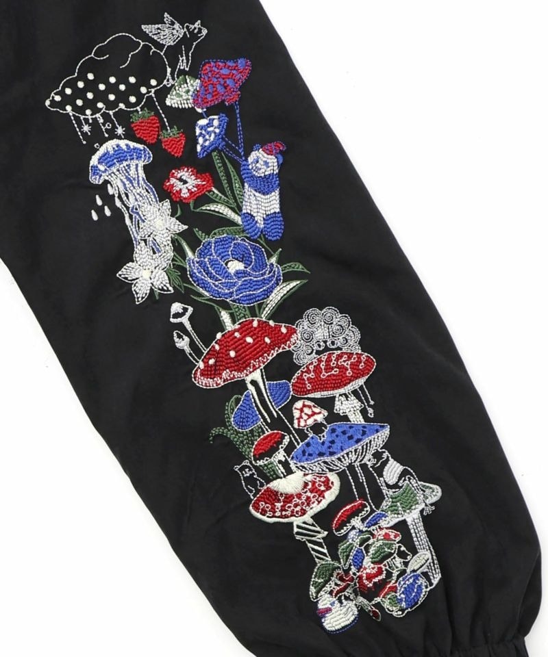 さらに、パンダやキノコ・お花柄などの可愛らしい刺繍を散りばめ、華やかさもプラスしました。