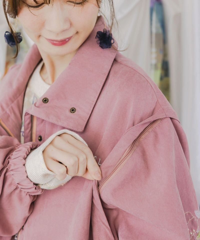 袖部分はファスナーで簡単に着脱できるので、その日の気分やコーディネートに合わせてアレンジ自在◎