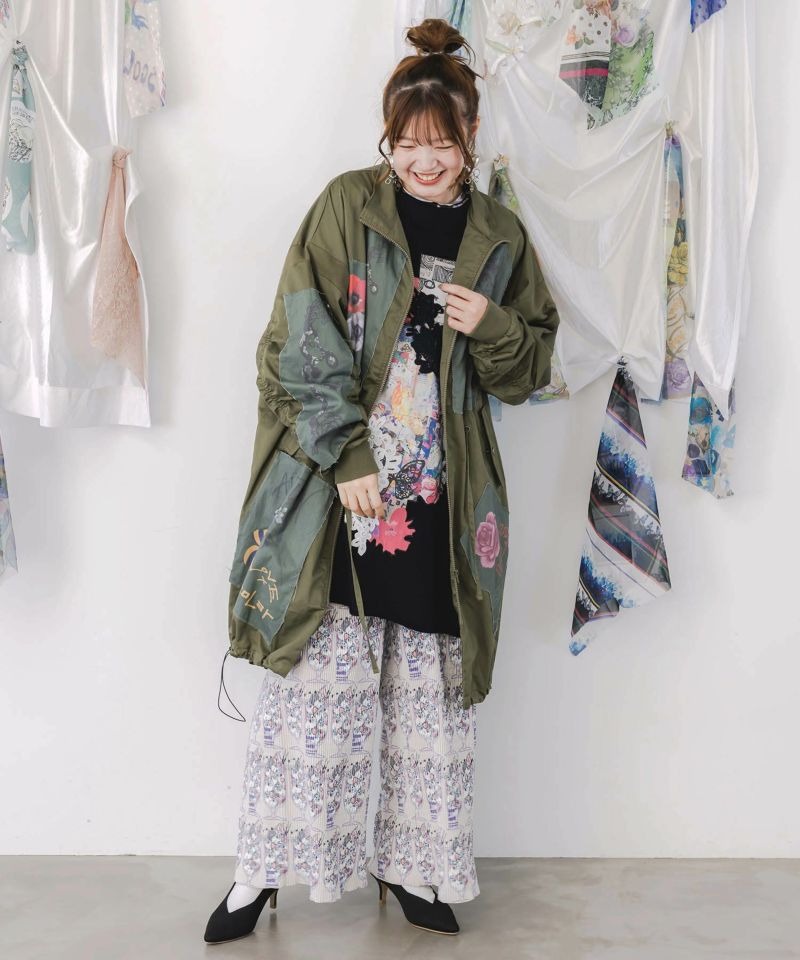 落ち着いた色合いの生地を組み合わせた大人かわいいロング丈ブルゾンが登場!!