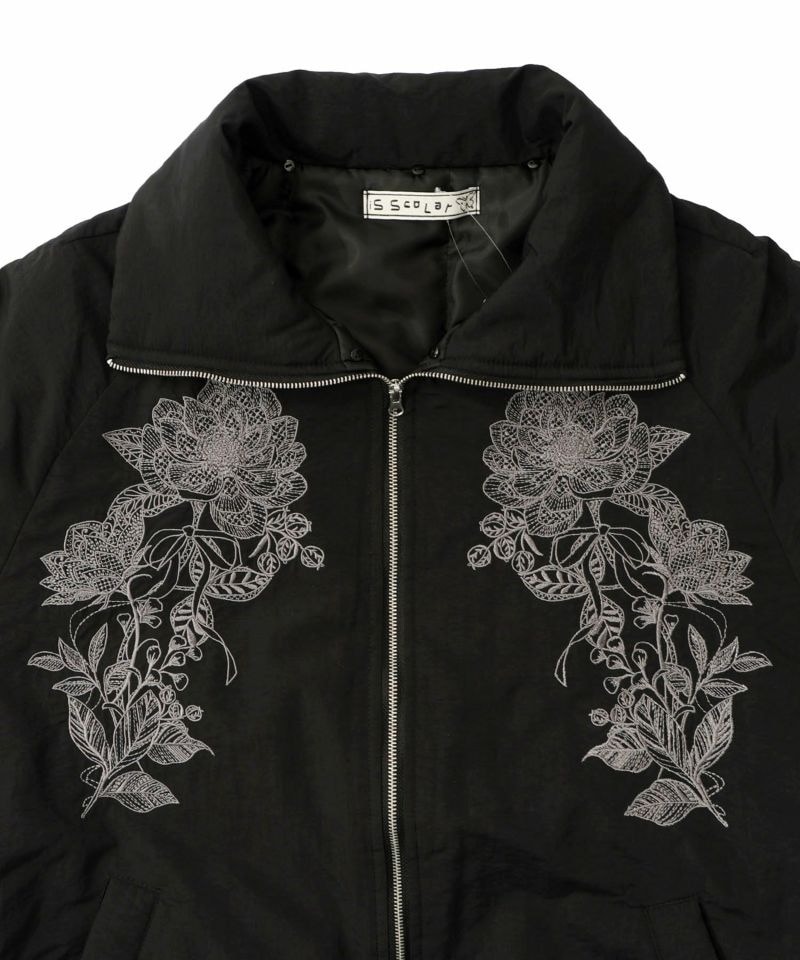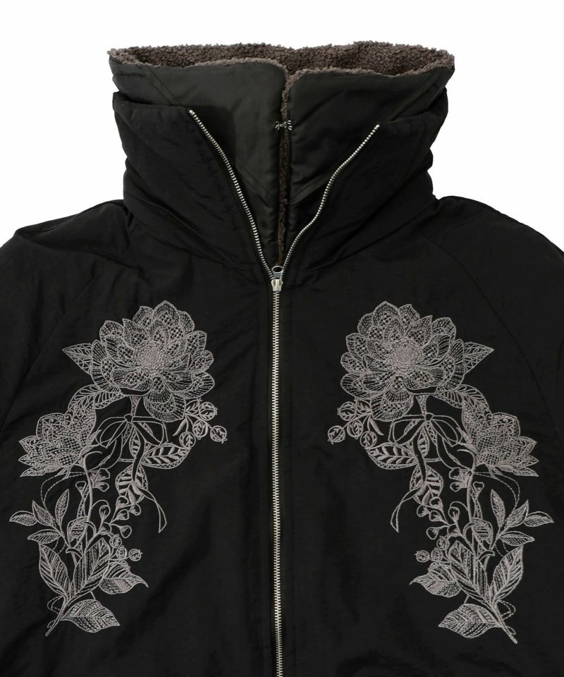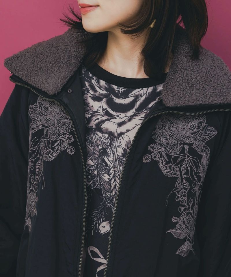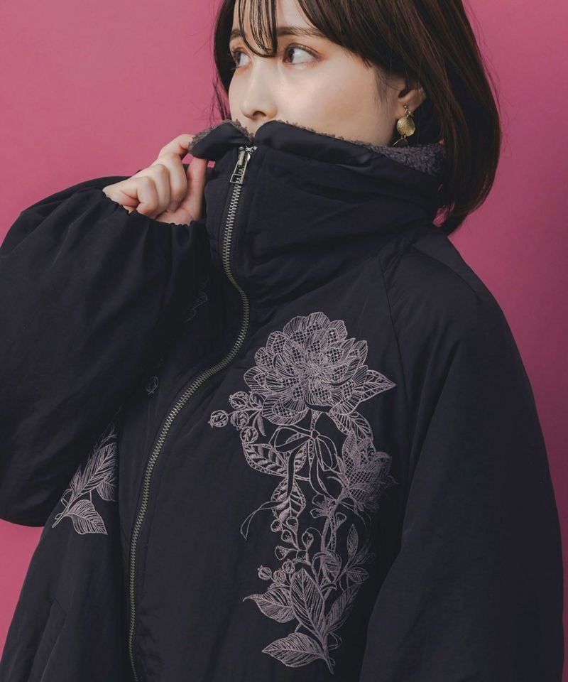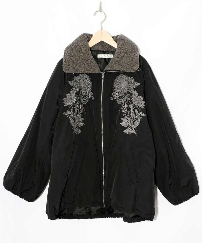 イズスカラー / ボア襟取り外し可能 花刺繍中綿ブルゾン