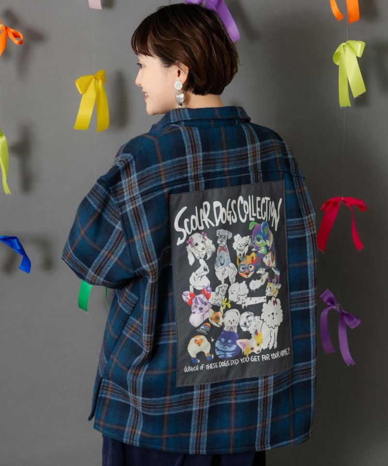 スカラー / わんコレ柄ネルチェック×ボアシャツアウター